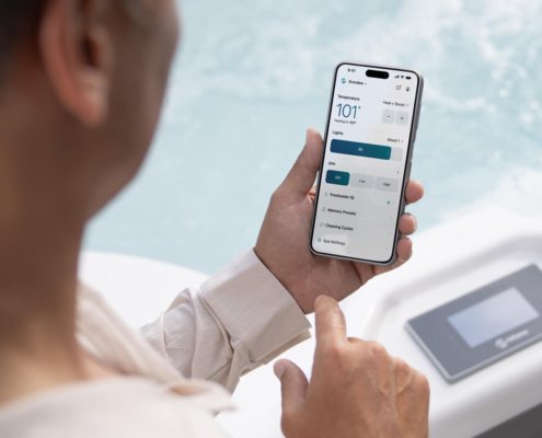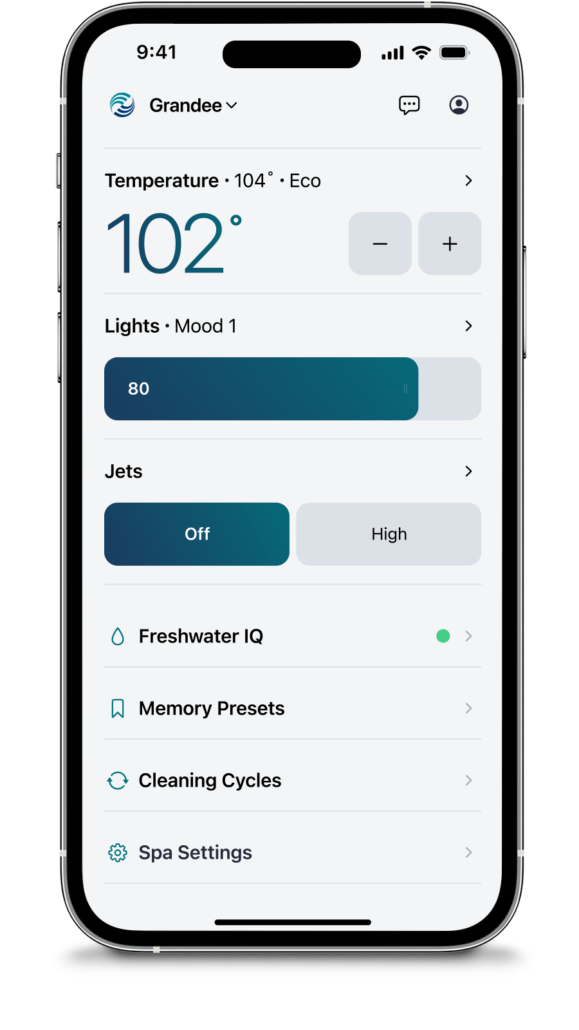 Die Hot Spring® Spas App wird durch das Connected Spa Kit (separat erhältlich) unterstützt und ermöglicht die Nutzung der Smartphone-Funktionen des FreshWater® IQ-Systems.